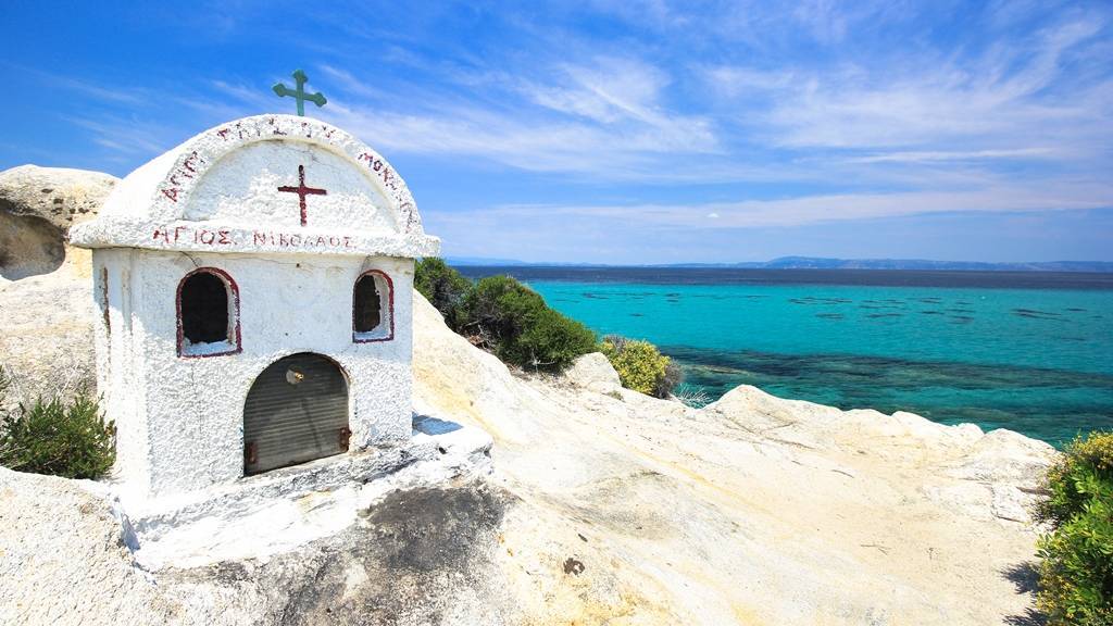 Halkidki pussala, kas ietver atsevišķas pussalas - Kasandru, Sitoniju un Afona.